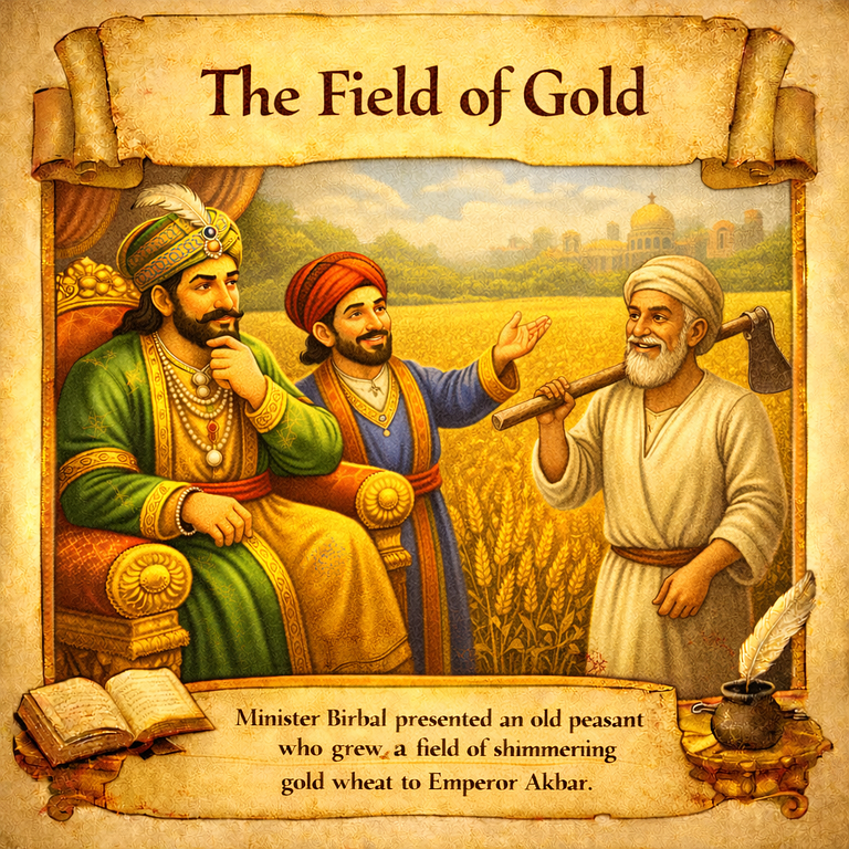 ← Back to Akbar Birbl Storys story 9 The Field of Gold Birbal tricks greedy courtiers by claiming he can grow a "field of gold" using special seeds, but the seeds will only grow if planted by someone who has never lied image.png 2.32 MB