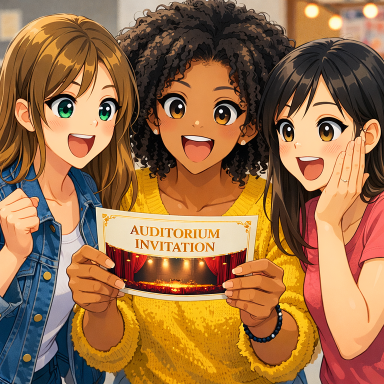 ← Back to The dance of three girls Chapter 1: getting the invitation One day the three girls Atulya Rivaa Anaisha got an invitation from a auditorium they were very excited about it and Anaisha said l am very excited about it. ChatGPT